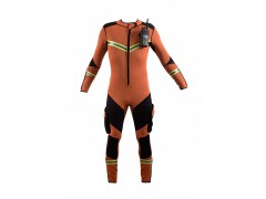 3mm高彈氯丁橡膠面料制作,具有高強度彈力和保暖作用,衣袖、褲腿、胸部、后背設有反光條,在昏暗和有霧環境下提高可見度。手臂、肩部、膝蓋以及臀部采用“婁梯布”有更好的防撞擊和耐磨功能。