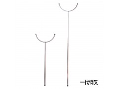 一代鋼叉末端裝半月弧形插頭,沒有銳利棱角。這種工具既可保證保安人員的平安,也能有效制服歹徒,且可防止對歹徒的人身損傷。一代鋼叉具有質量輕,攜帶方便,價格低等優勢;但承重力較低。