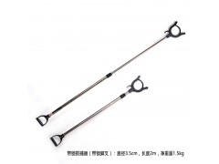 操作及特點:末端裝有圓弧形插頭。便于攜帶,使用靈活,操作簡單。當遇持刀行兇者,拉足扦體,管內彈簧梢彈出,即可固定,稍用力頂肇事者的腿部,即可固定,使其無法活動。