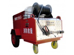 推車上搭載有一套目前滅火能力最強最省水的細水霧/泡沫滅火設備,此設備動力采用本田發動機,泵組采用意大利進口設備,自帶260升水箱和40升泡沫罐,30-50米卷盤軟管,多功能水槍能實現直流、水霧、泡沫任意轉換,泡沫自動混合,有30米移動水管能從普通自來水龍頭進行取水補給,水帶、水槍、消防扳手等配置齊全。有兩個能360度萬向轉動輪,能輕松任意變化角度,主輪用兩個加強型承載輪胎完全滿足性能,推車有機械制動和駐車制動功能,在推動時能控制速度,陡坡停頓時駐車制動,安全適用。