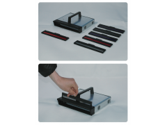 - 足跡燈是扁平狀方形結構,前端線性排列的LED燈珠發出的光經過半柱面透鏡后變成扁平狀光束輸出。在半柱面透鏡的前面上方有一個長條狀開口,通過這個長條狀開口,可以在透鏡的前面插入安裝偏振片,使足跡燈輸出偏振光,或插入安裝濾光片,使足跡燈輸出色光。