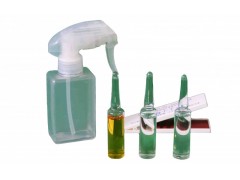 - 用開瓶器打開1瓶試劑A、2瓶試劑B,將試劑倒入噴霧瓶中,配制成66ml工作溶液。