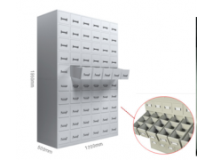 DNA血卡柜內(nèi),每抽分為3格,單格深度尺寸為130mm,可容納3組DNA血卡,單抽可容納9組DNA血卡,即450份血卡,單個(gè)血卡柜具有5組10層抽屜,可容納20000份以上血卡。