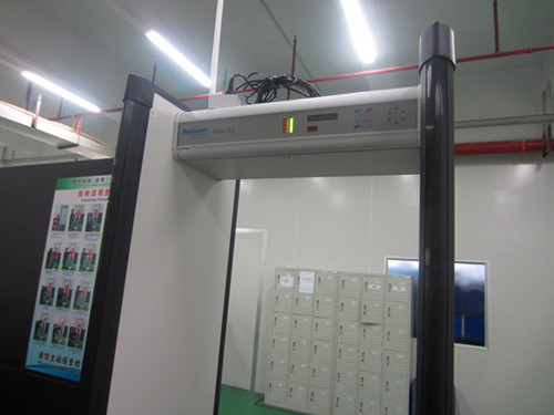 思邁奧技術(shù)工程師在昆山富士康工廠安裝Metor6S型進(jìn)口金屬探測安檢門現(xiàn)場圖