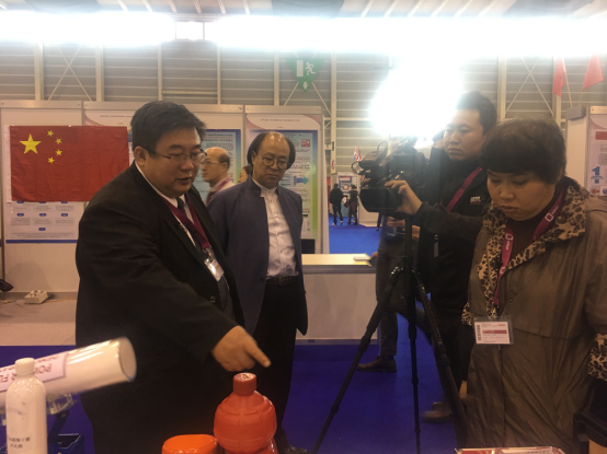展會期間,中國常駐聯合國日內瓦辦事處和瑞士其他國際組織代表團二等秘書劉少軒參觀了國泰科技參展項目并給予高度評價。“高品質超細粉體滅火劑”經壓縮氮氣驅動噴射,生成氣溶膠態滅火劑,具有氣體滅火劑的“全淹沒”特性,快速籠罩火源,其粒子在火焰中分解消耗大量自由基,可快速撲滅大火。其平均粒徑為5um,有很高化學活性,有極好流動性、斥水性,有極高滅火效能,其撲滅A、B、C類火的最低滅火濃度為50g/m³。