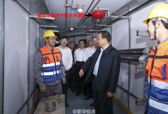 圖4 國務(wù)院總理李克強視察裝有超細(xì)干粉滅火系統(tǒng)的地下管廊