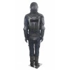 三、產(chǎn)品結(jié)構(gòu):防暴服由前胸、后背、襠部、上肢和下肢等防護(hù)部件組成,上肢防護(hù)部件含肩、上臂、肘和前臂等防護(hù)部件,下肢防護(hù)部件含大腿、膝、小腿、腳面和腳踝防護(hù)部件等。