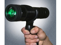 524綠色勘查手電筒 綠色是人眼視覺反應最敏感的光波。524波長針對紙張上的淺印痕跡及熏染后的痕跡勘查,具有十分明顯的增強提高介質界面與潛痕跡的反差,是現場勘查采證專用光之一 技術規格 光源:LED 波長峰值:524nm 功率:30w 光照度:10000Lx 光均勻性:85% 電壓:DC12v 電源:可充專配鋰電池 體積: φ55mm*210mm 重量:1000g(含電池)