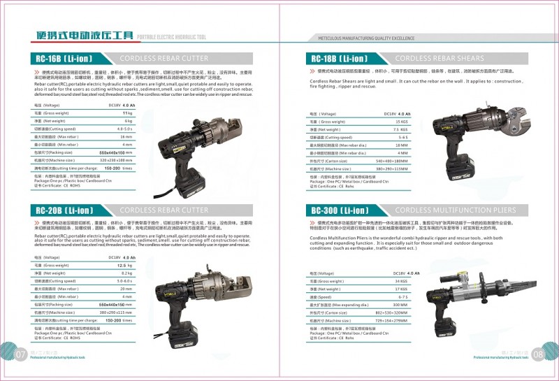 電池供電,無需電纜,無需再外接動力,便于攜帶,特別適合在狹小的空間, 野外等環(huán)境進(jìn)行救援搶險作業(yè),是破拆救援的首要裝備。 |