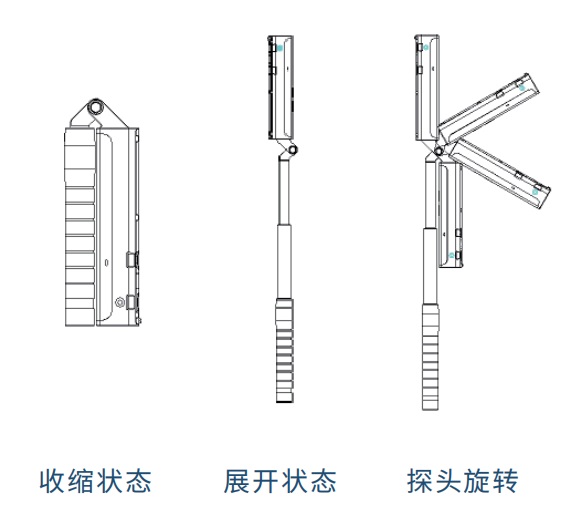 RG500 自帶可伸縮式操作桿,探頭可旋轉實現無 死角探測,可有效地保護檢測人員的安全。其內置的 GPS 定位模塊,能夠實現測量位置與測量數據的對應 存儲,為應急處置提供必要的數據支持。