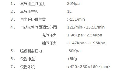1)、可自動進行正、負壓人工呼吸。能夠把含有氧氣的新鮮空氣自動輸入傷員肺內,又能自動將肺內氣體抽出,且可連續工作,以自主幫助傷員進行人工呼吸。