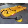 b、充氣方式分鋼瓶充氣與腳踏泵充氣兩種:氣瓶充氣式擔架是擔架上配有300克氣瓶,拉線拉一下就會擊破氣瓶,快速充氣(氣瓶充氣式擔架也有了腳踏泵,也可以腳踏充氣);腳踏式擔架是直接腳踩泵直接充氣。