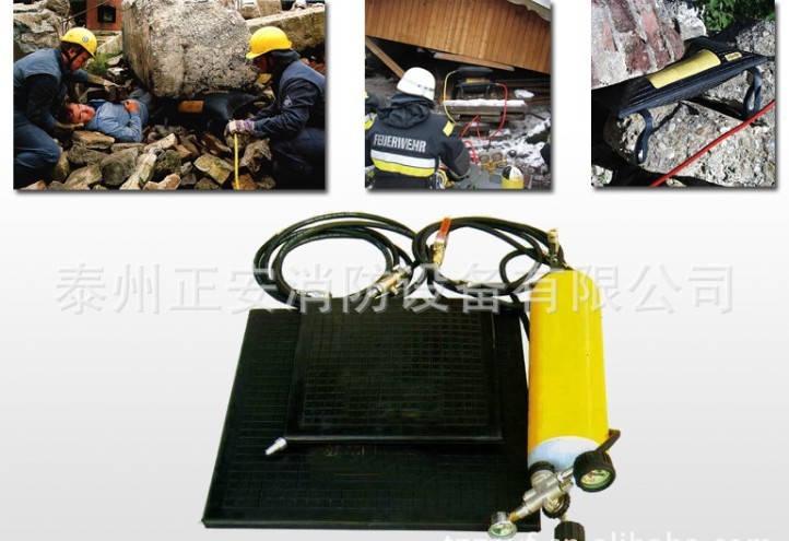 救援起重氣墊構件:由氣墊、連接管、充氣瓶等組成。