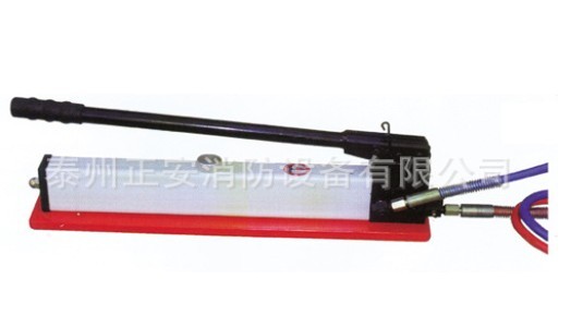 性能指標(biāo): 額定輸出壓力(高壓壓力) 2-63 MPa 額定輸出流量 ≥1.5 ml/次 低壓輸出壓力 5-10 MPa 低壓流量 ≥12 ml/次 油箱容積 1.7 L 最大手柄力 ≤350 N 質(zhì)量(含3m雙液壓油管) ≤10㎏ 尺寸:長×寬×高 650×150×190㎜