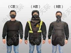 •無鉛柔性輻射屏蔽復合材料并經過AFPRRU浸漬強化耐磨處理制作背心式防護服。可根據現場情況選擇,將背心套穿在核生化沾染防護服外,或穿在重型防護服內。