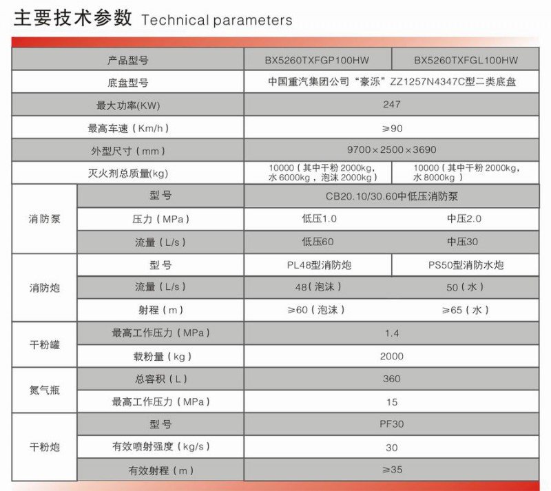 供應:BX5260TXFGP100HW型干粉-泡沫聯用消防車/BX5260TXFGL100HW型干粉-水聯用消防車