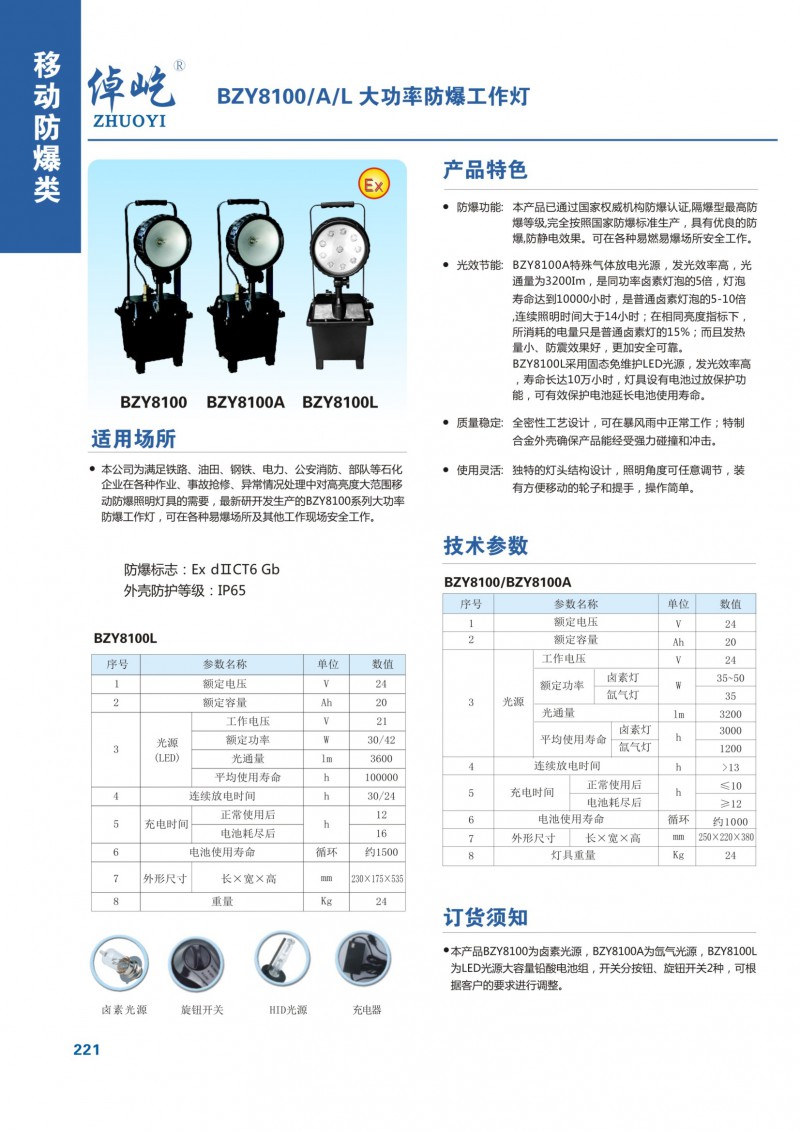 » BZY8100/A/L大功率防爆工作燈移動防爆燈防爆應急照明