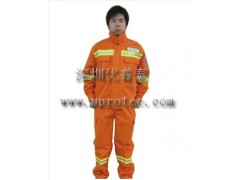 特點:具有優良的阻燃性能和透氣性能,堅實耐用,安全舒適。褲口特別設計加強牢讀,防止被樹叢荊棘撕裂,裝反雙色光帶以提高撲火人員的黑夜可視度。上衣腰部裝耳瓣以方便固定安全吊帶。上衣加長,增加衣褲重疊和遮蓋面積。