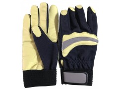 材質(zhì):藏青色芳綸原液針織布、黃色防火頭層牛皮