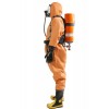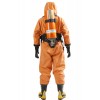 2、半封閉式結構,由連體帽、化學防護服、防護靴、防護手套等部分組成,可與空氣呼吸器等設備配合使用;