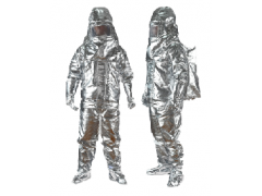 產(chǎn)品符合XF 634-2015《消防員隔熱防護服》標準要求。采用芳綸鋁箔復合阻燃織物三層制成,具有防輻射熱效果好、耐高溫、質(zhì)地柔軟、重量輕、牢度強以及防水等特點,適用于消防隊員撲救輻射熱較強的石油火災(zāi)和氣體火災(zāi)以及冶煉、玻璃、搪瓷、水泥、化工、熱電等行業(yè)高溫操作時的防護服。全套由頭罩、上衣、背帶褲、手套,護腳等組成。